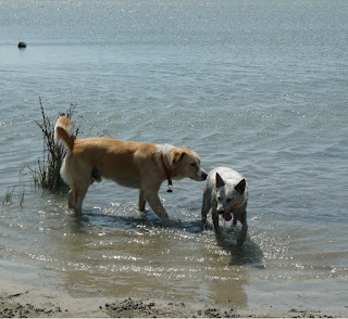 And then it was time to go home. Herding Murphy wasn't too hard because I'm such a gooddog. He was going the wrong way, but Mommy told me to go get him, so I did and then I raced him back. I'm a lot faster than he is. I'm faster than anything! See how big we're smiling???
